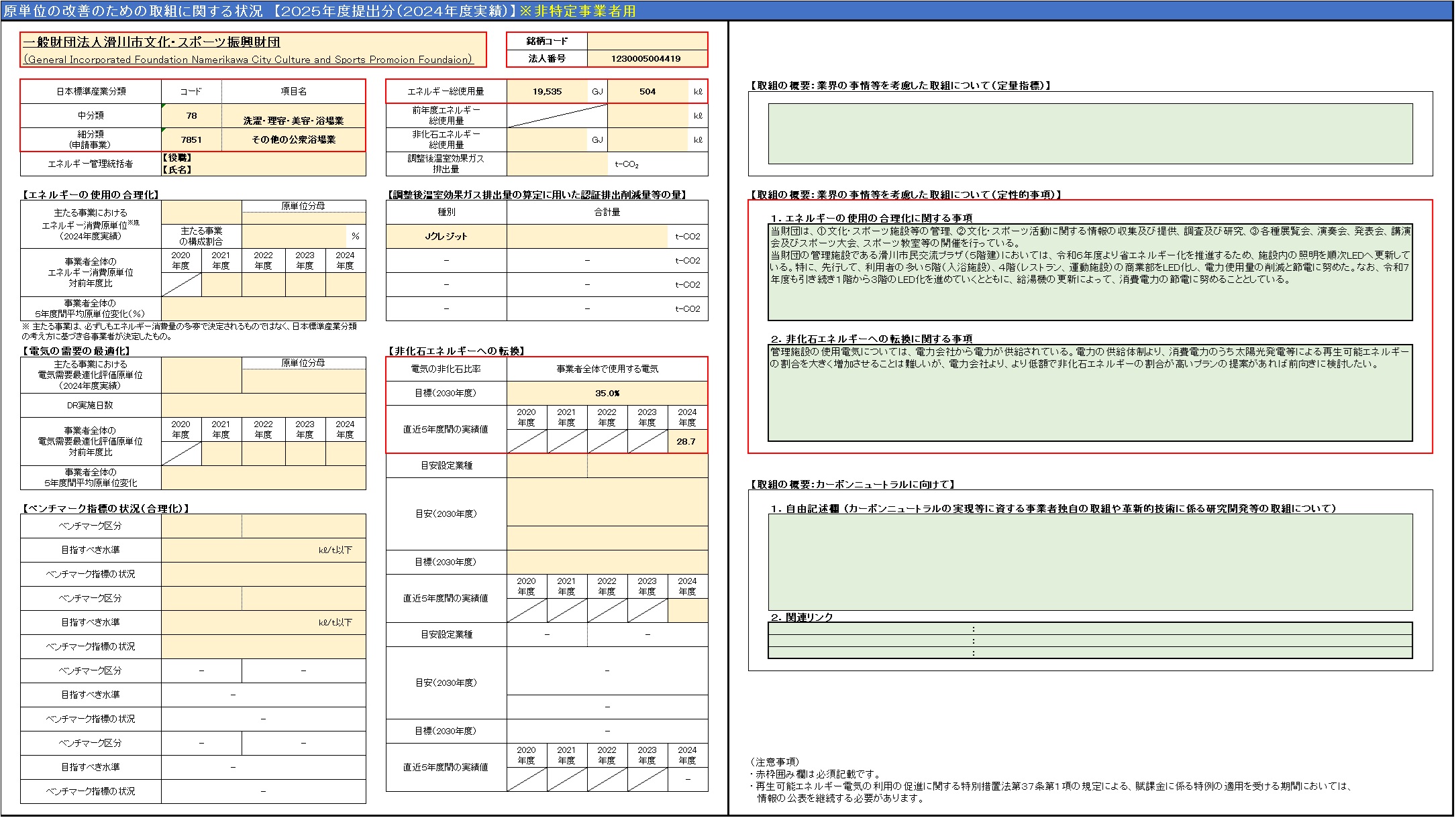原単位の改善のための取組に関する状況 【2025年度提出分(2024年度実績)】※非特定事業者用